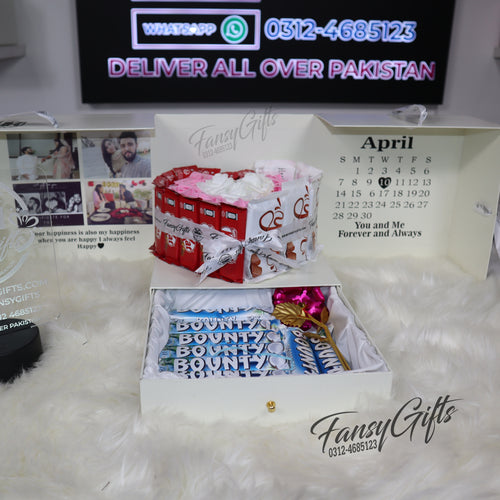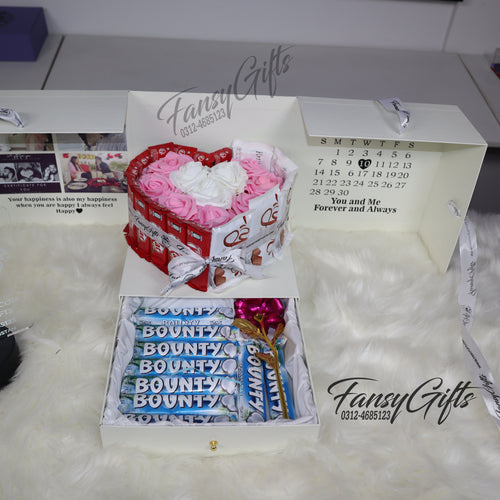 Customize Heart Drawer Box with Chocolates, Metal Flower & Cards