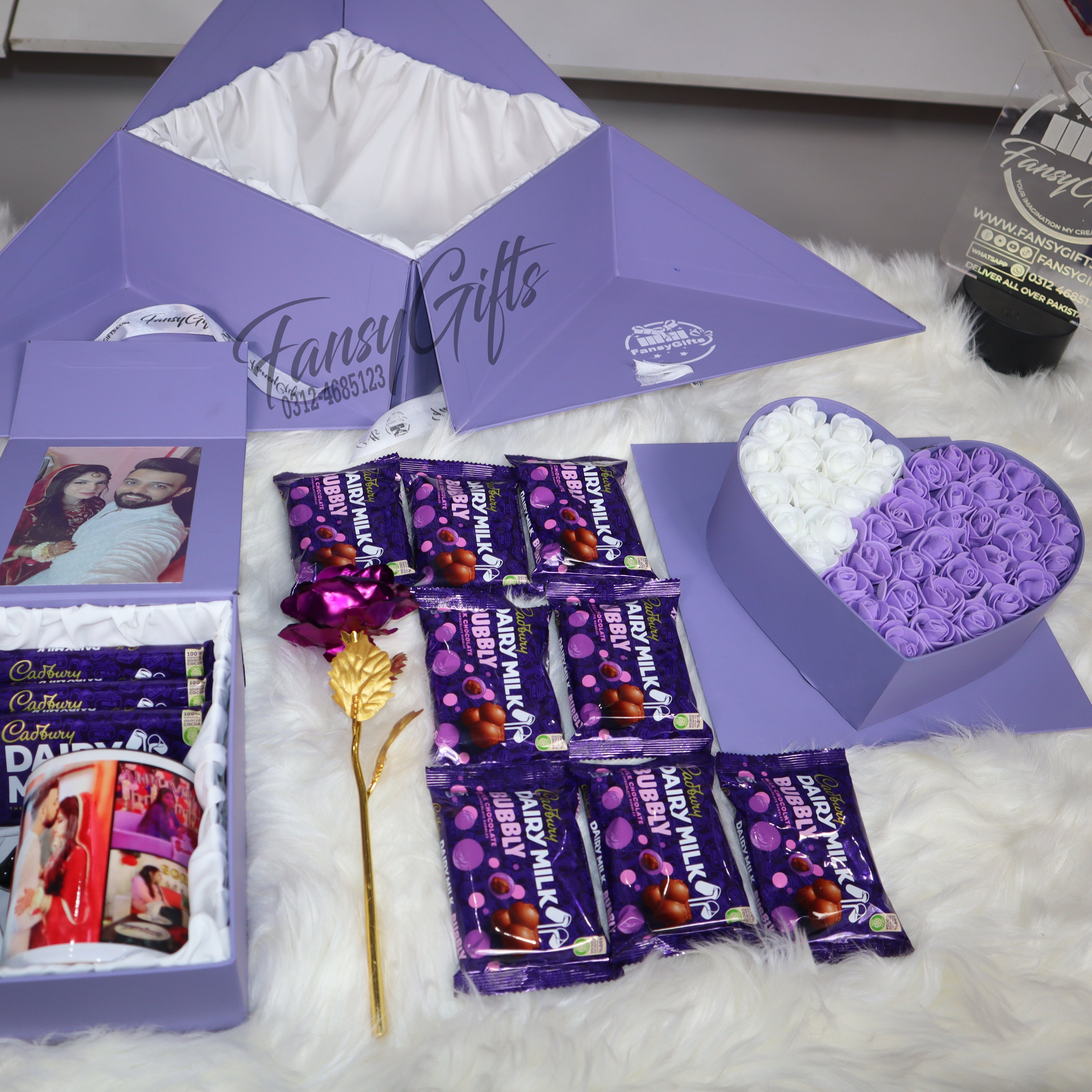 Heart Drawer Corner Box Gift Set with Chocolates, Roses & Customize Mug