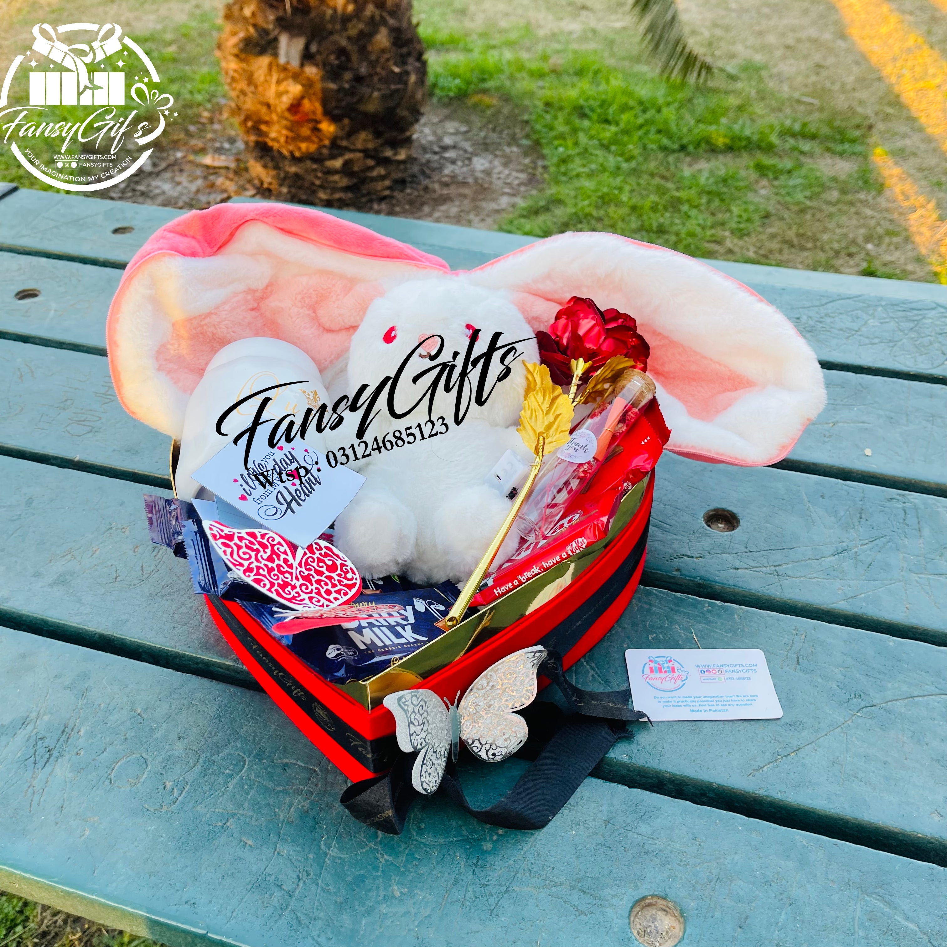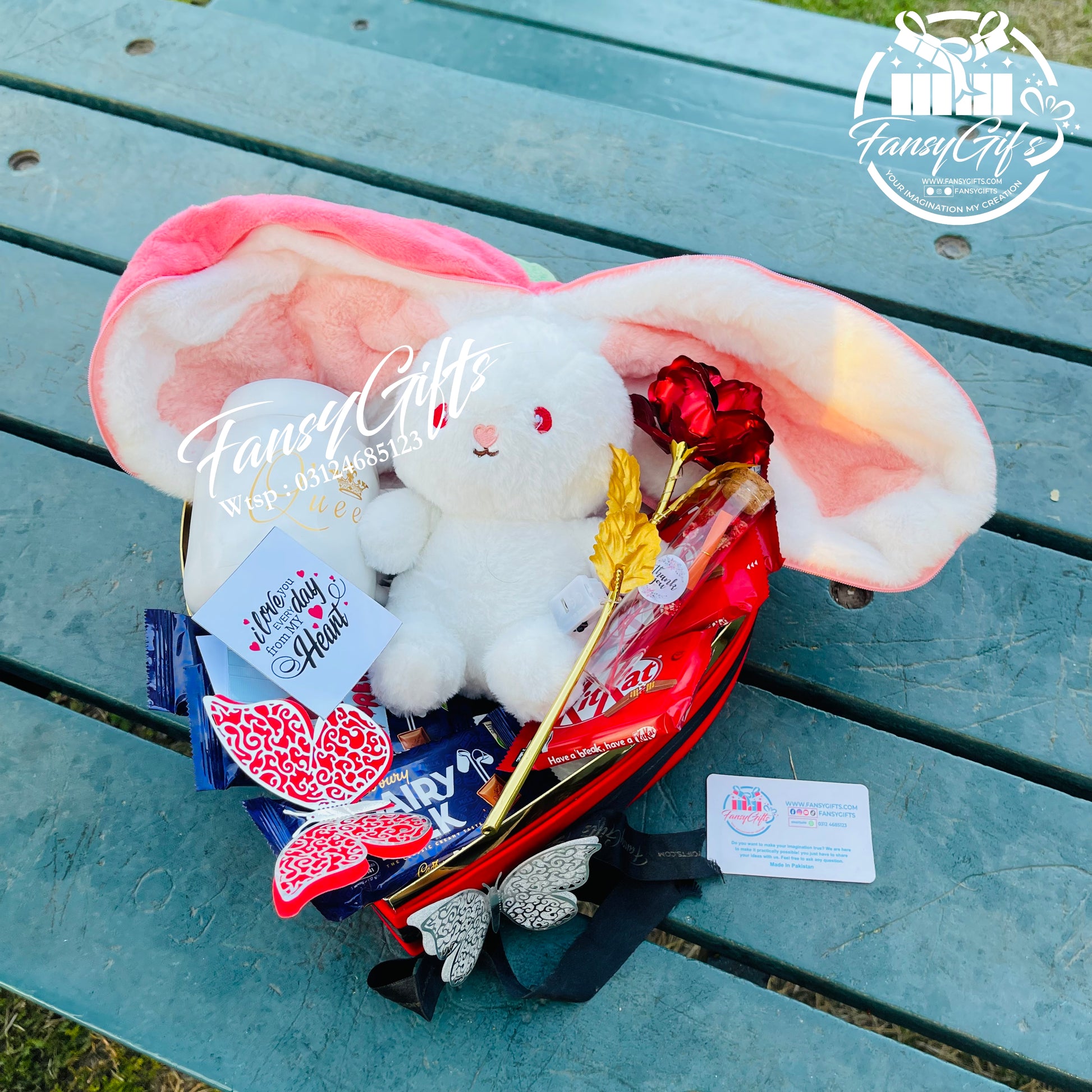 This isn't just a gift - it's a complete love experience! The customizable heart inside the fluffy rabbit makes it deeply personal, while the metal flowers provide lasting beauty. The mug offers daily reminders of your love, the chocolates add sweet indulgence, and the cards let you express your heartfelt message. Everything is beautifully decorated and coordinated to create a stunning presentation that will take their breath away!